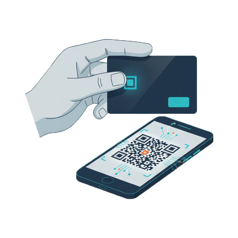Si son téléphone n’a pas NFC, il peut simplement scanner le QR code sur la carte.